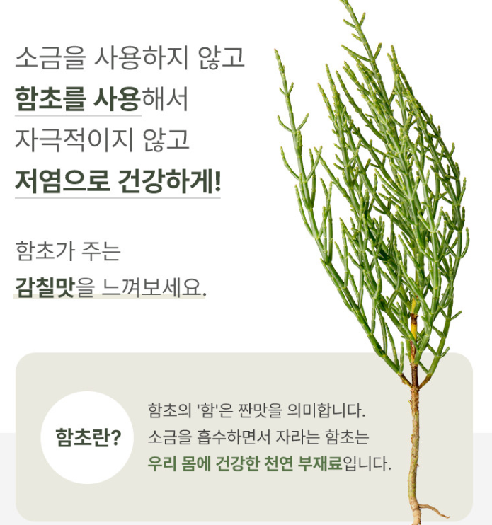 소금대신 함초를 사용해 자극적이지 않은 맛과 감칠맛을 더했다는 것이 세번째.