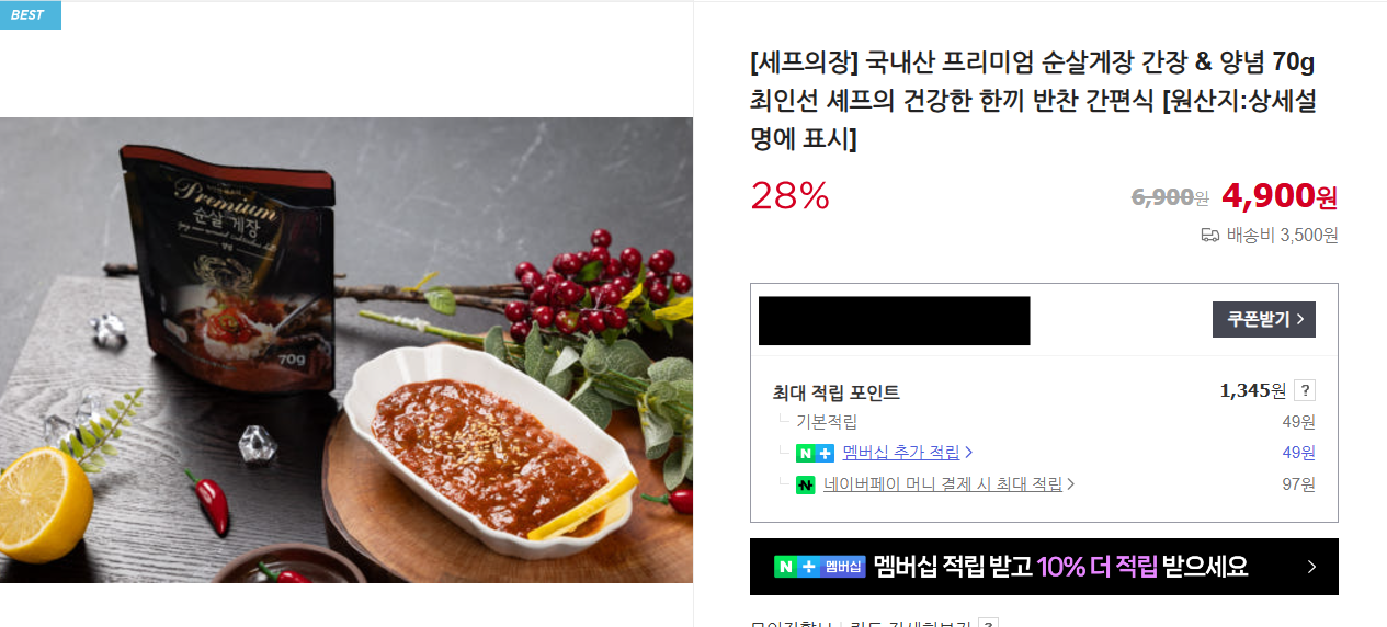 드라마 속의 순살 게장은 간장 맛과 양념 맛 두가지 상품으로 이루어져 있는데요. 한 파우치 당 70g씩 현재 개당가격은 4,900원입니다. 또한 TV에 나온 순살 게장 외에도 상품 판매처를 둘러보면 보다 여러가지 순살, 절단, 암꽃게와 같이 다양한 구성의 게장 상품을 보실 수 있습니다.