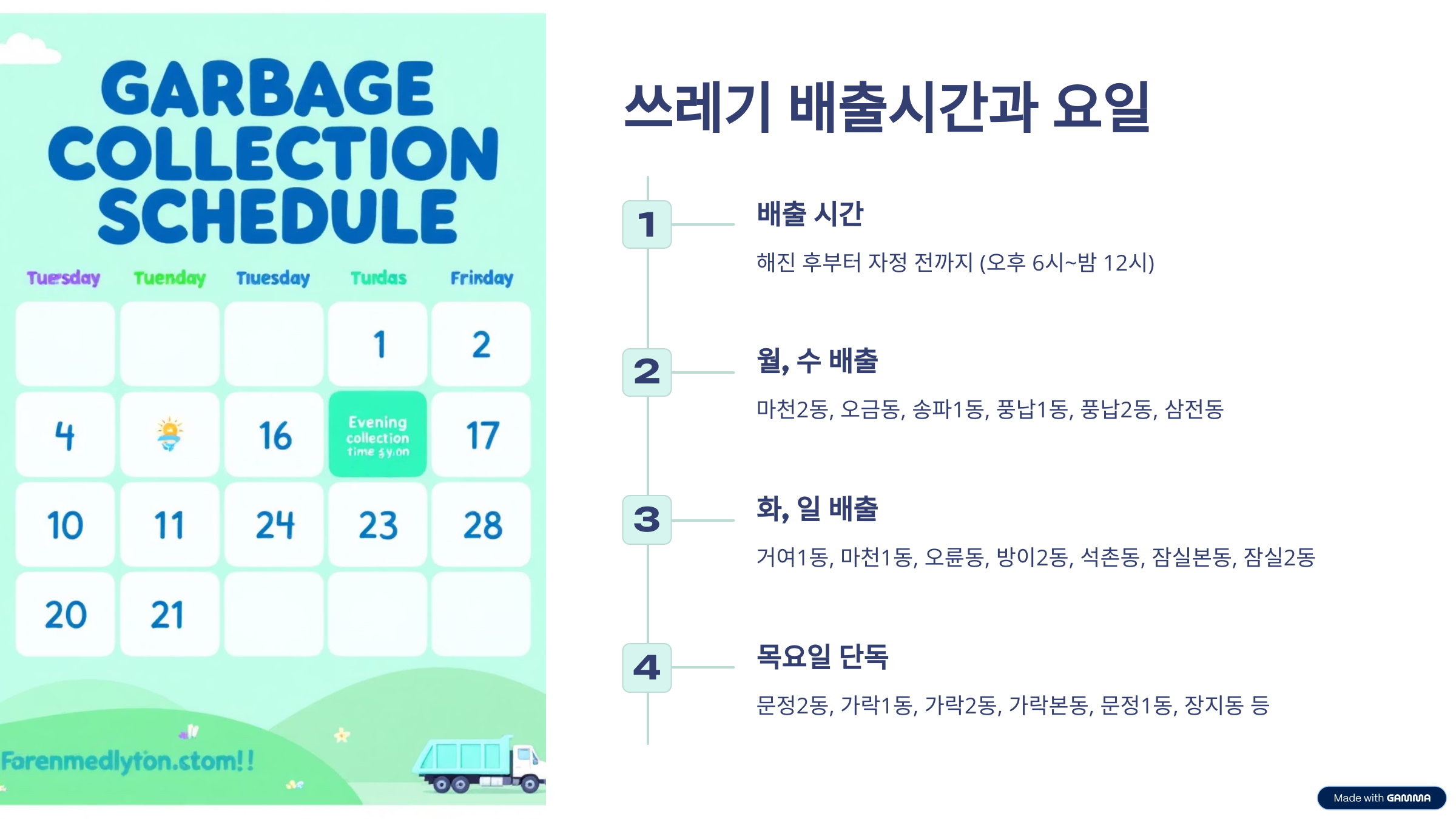 송파구는 배출 요일·방법이 동별로 상이하므로 반드시 확인!