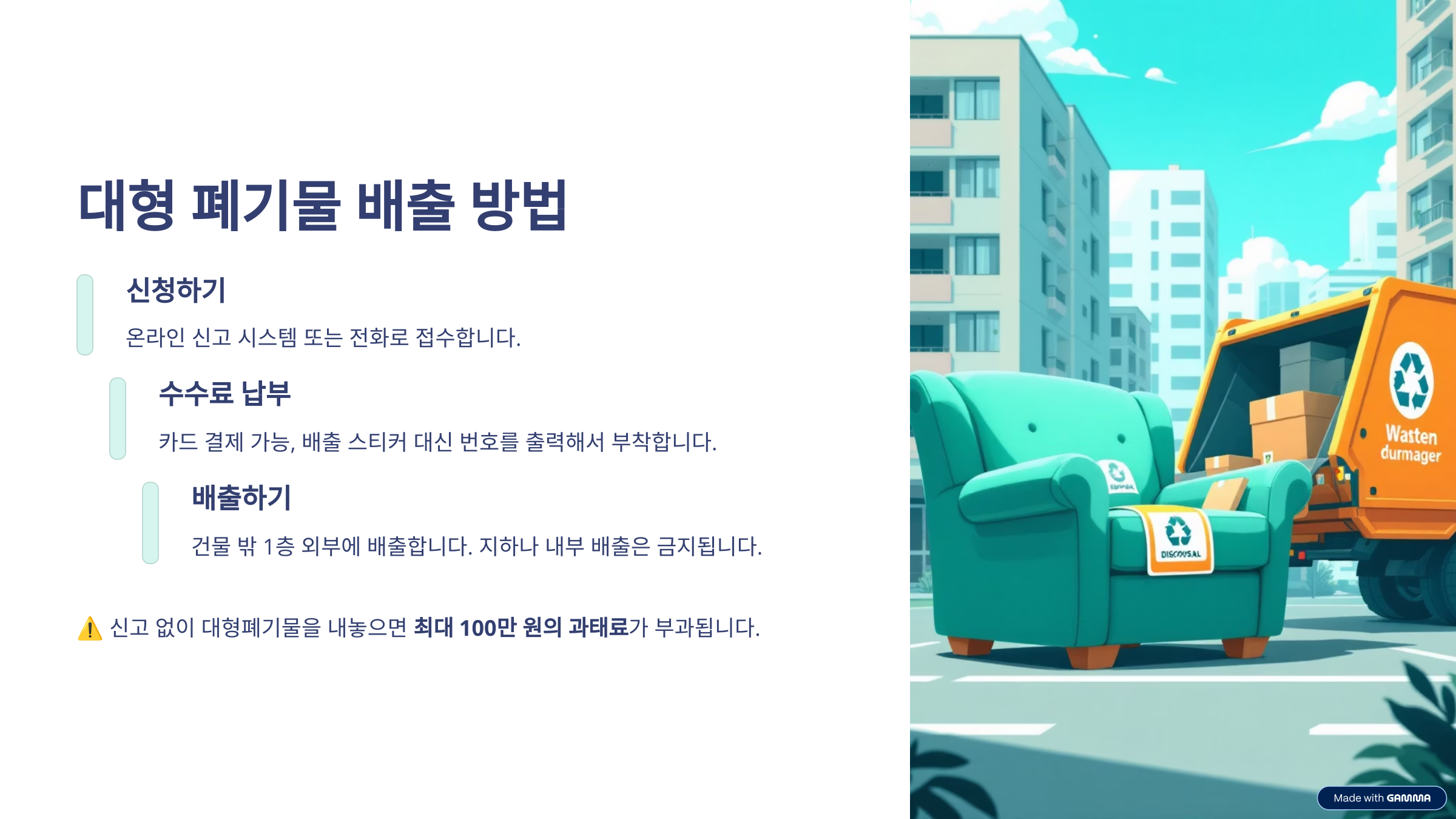 ⚠️ 신고 없이 대형폐기물을 내놓으면 최대 100만 원의 과태료가 부과됩니다.
