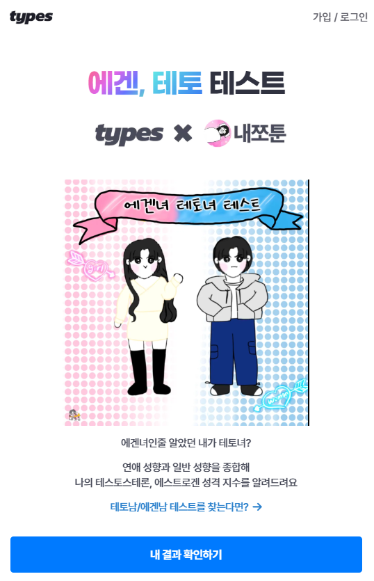- 타입스(Types): 앱 설치 필요, 수치형 결과 제공, 친구들과 공유 가능
