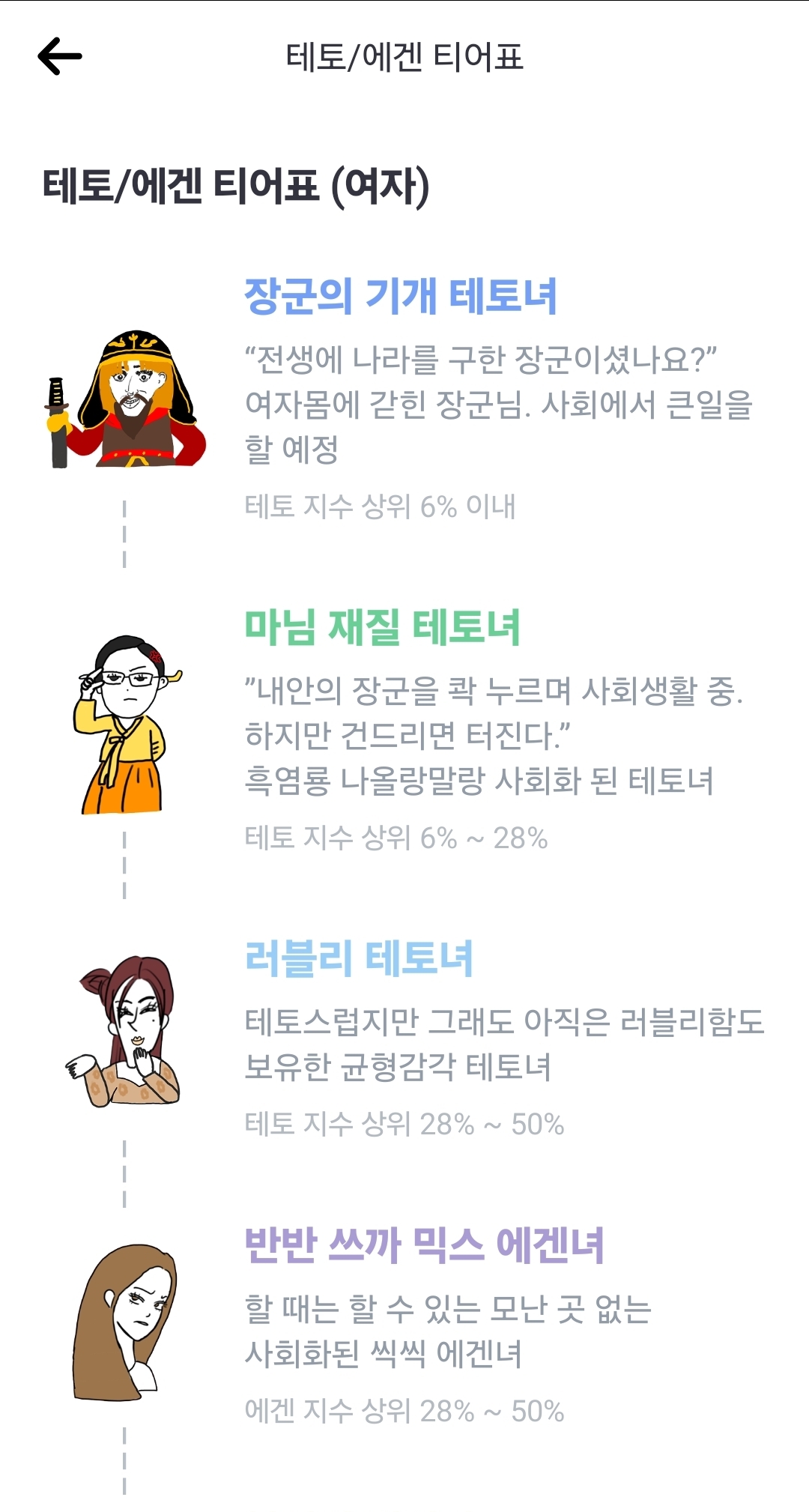 에겐/테토 성향별 특징 정리