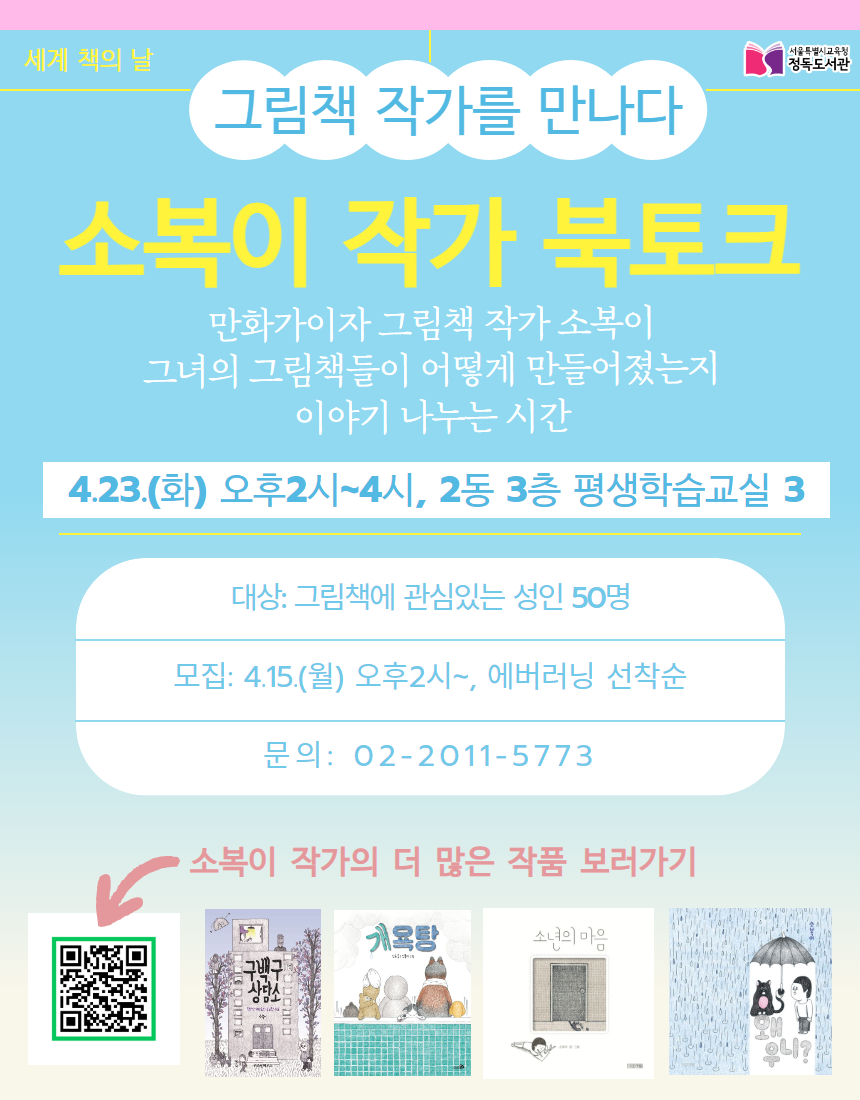 서울 정독도서관에서 소복이 작가 북토크를 진행할 예정이라고 합니다.