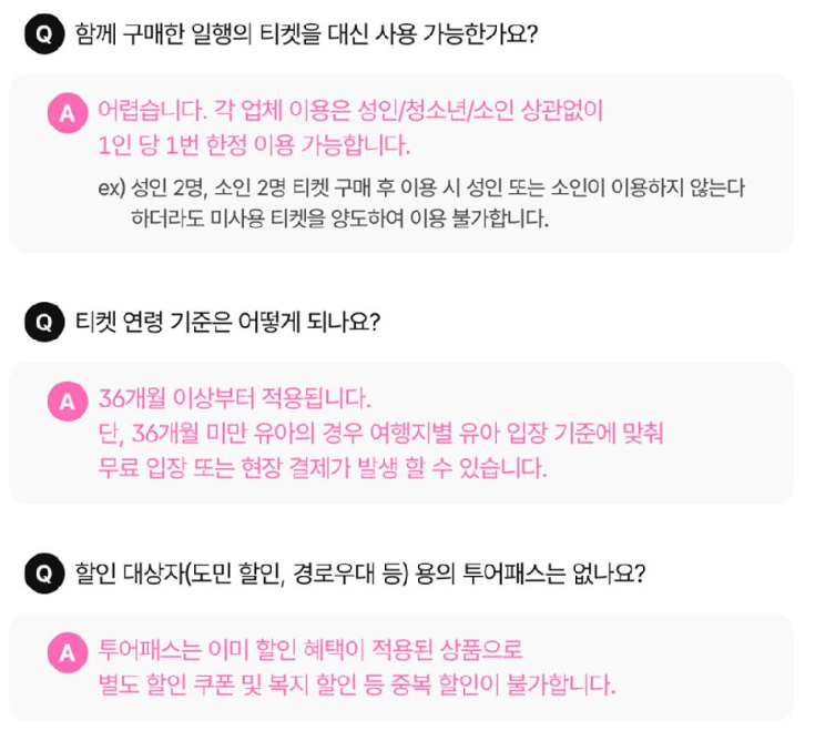 - 구매 후 티켓 내 가맹점 정보를 확인하고 여행 계획을 세우세요.