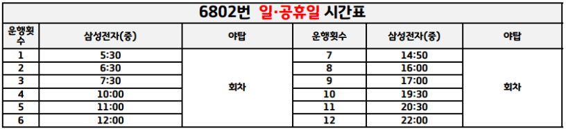 ✔️ 삼성전자 출발: 05:30 (평일/토요일/일요일, 공휴일 동일)