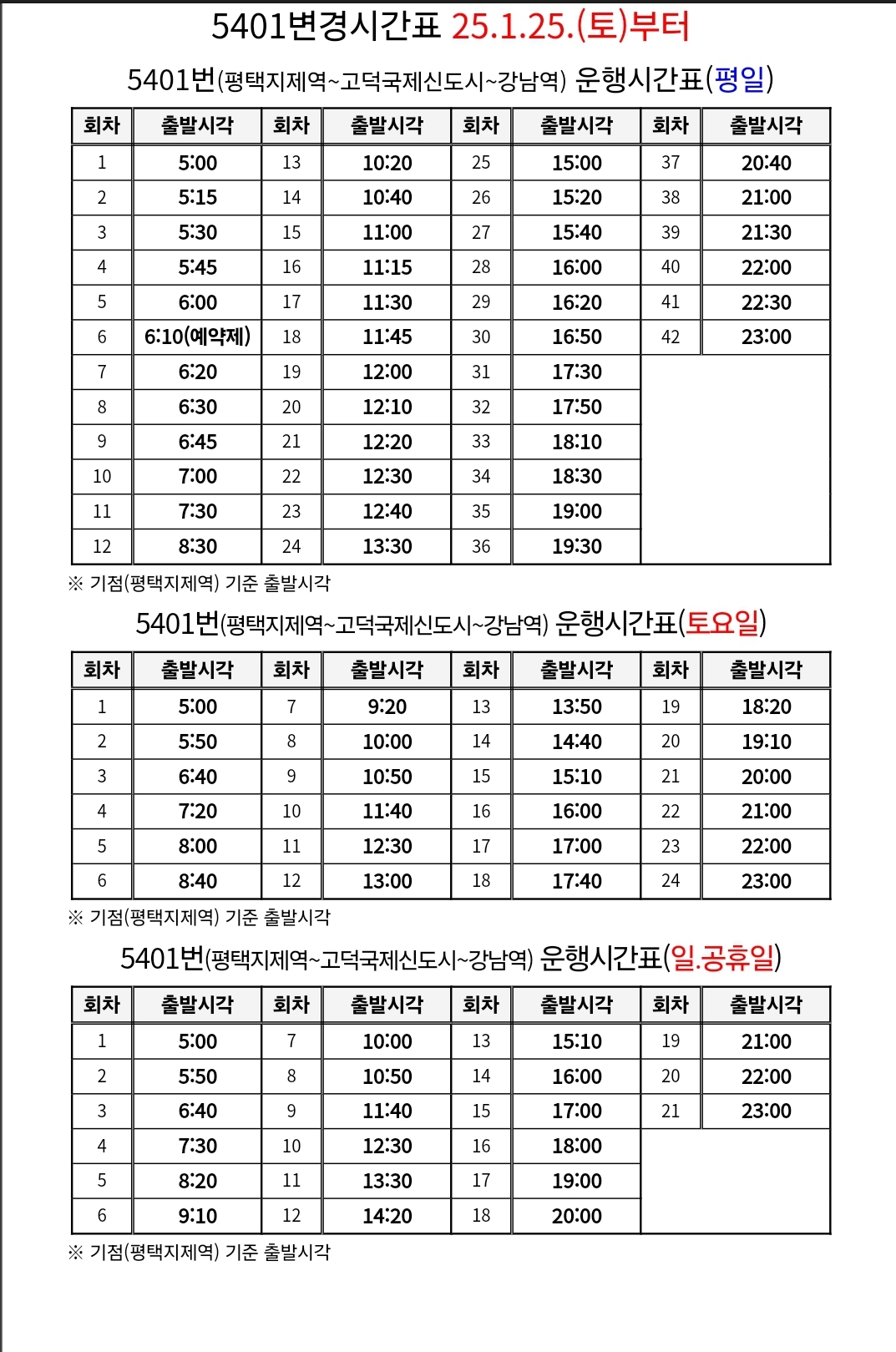 위의 최신 5401번 버스 시간표 이미지를 저장하시어 필요할 때마다 편하게 보시는 것도 좋은 방법입니다.