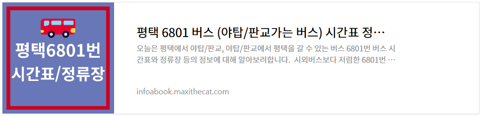 | 평택 6801 버스 (야탑/판교가는 버스) 시간표 정류장 바로보기 (0) | 2025.01.14 |