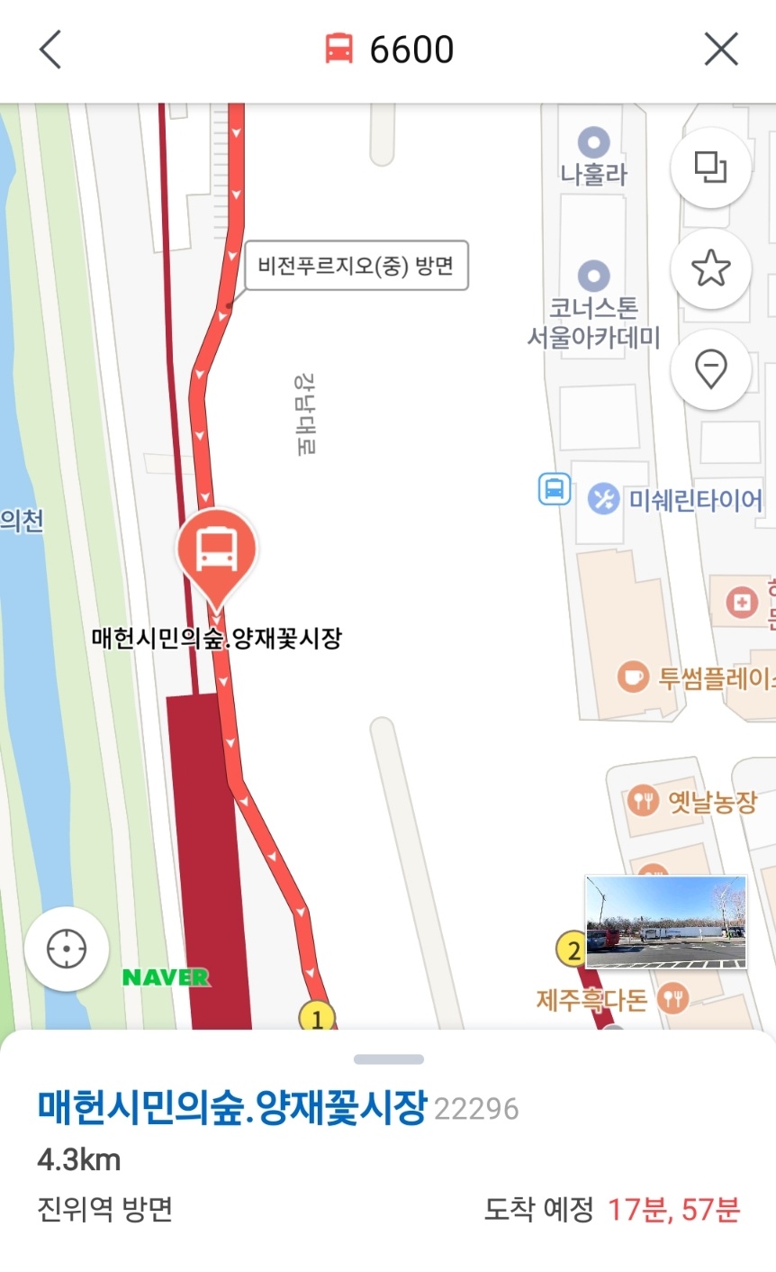 양재꽃시장에서 6600번 버스를 타기위해서는 신분당 양재시민의숲 역의 1번출구 방향의 버스정류장으로 이동해 주시면 됩니다. 건너편에 바로 투썸플레이스가 있으니 이점을 포인트로 찾아주셔도 좋아요. 신논현역과 마찬가지로 도로 가까이 연석에 적힌 6600번 번호를 찾아 줄서주신 후 버스에 탑승해 주시면 됩니다.