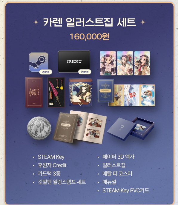 <프린세스 메이커 : 카렌> 텀블벅 펀딩은 얼리버드 상품을 제외하고 7가지 상품으로 구성되어 있습니다.