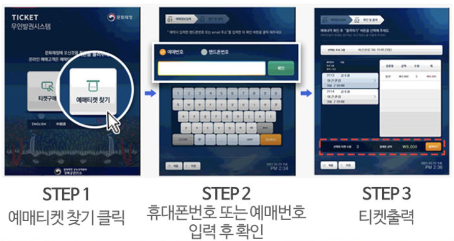 관람 당일 무인발권기를 이용해 티켓을 수령 후에 입장할 수 있는데요.