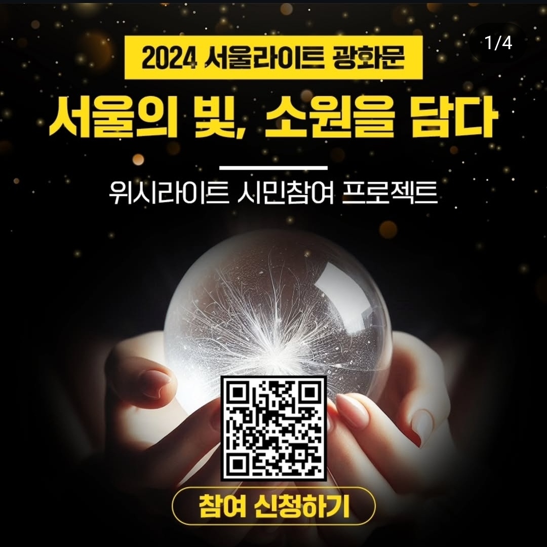 2024 서울라이트 광화문 위시라이트는 투명한 구체에 시민들의 소원을 담아 LED 조명과 함께 설치하는 참여형 전시입니다.