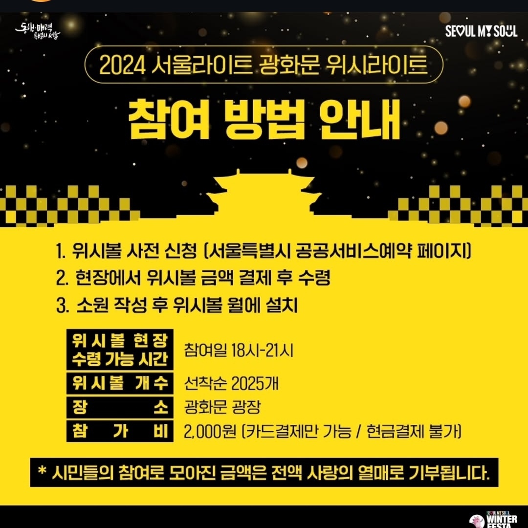2024년 12월 13일 금요일을 시작으로 '서울 윈터 페스타'가 시작됩니다. 서울라이트 광화문, 서울콘 등 윈터페스타의 다양한 프로그램 중 이번 글을 통해 서울라이트 광화문 행사 정보, 관람 포인트와 위시볼 신청방법 등을 짚어 볼게요.